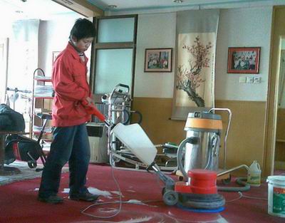 干泡洗地毯子機有滾刷式和轉刷式兩種,用該機洗地毯的方法比較簡單,對不臟的地毯和純羊毛地毯清洗效果頗佳,且對地毯損傷較小。