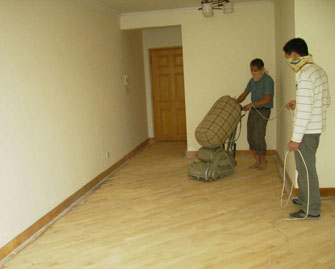 1. 使用大型地板翻新機(jī)械數(shù)次打磨除去漆層、表層、木質(zhì)層約0.5毫米,再經(jīng)仔細(xì)砂光使地板表面細(xì)膩、光滑
